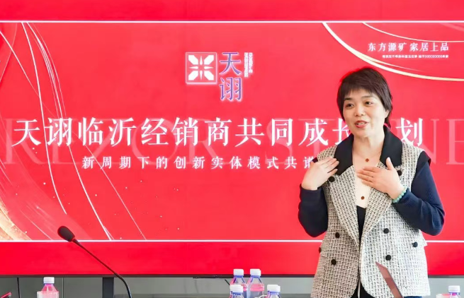 会议开篇,天诩新材料副总经理常振成向与会者介绍了天诩经销店的当下发展情况及规划。截至目前,天诩经销店已在山东、河北、江苏、安徽、浙 江、内蒙、山西、甘肃、湖南、 青海、福建、海南等全国多个城市完成战略布局,各地经销门店正火热装修中,部分装修好的门店已在当地市场崭露头角。
