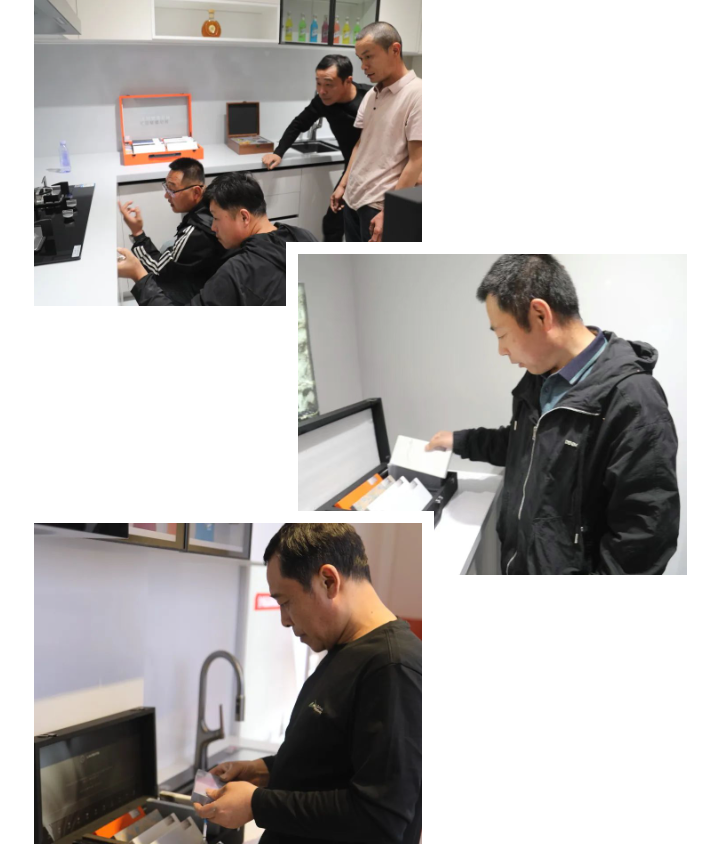 随后,天诩沂南经销商肖总分享了开店历程与未来规划。他表示,天诩总部团队全程主导店面装修,从空间规划到产品设计应用,最终呈现的效果令人十分满意!总部专业团队凭借丰富经验,精心雕琢每一处细节,将展厅打造成了兼具时尚感与体验感的现代美学空间。展望未来,肖总郑重承诺:“我将扎根沂南市场,依托天诩高品质石英玉石产品与成熟工艺,持续为当地消费者提供高品质整体橱柜服务。”