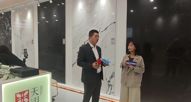 展会期间,天诩石英玉石也受到了媒体的广泛关注。天诩新材料设计总监常振成在接受采访时,详细介绍了品牌发展历程、产品优势以及加盟政策。目前,天诩特许经销店已成功落地临沂、青岛、济南、南京、唐山、内蒙古、海南、西宁、青海、北京、福建等多个城市,并且正在面向全国范围内积极招募特许经销商。天诩为加盟商提供全方位支持,包括旧店翻新、严格的区域保护政策以及涵盖品牌、培训、运营等十大系统的深度扶持,助力加盟商摆脱同质化竞争困境,开启玉石家居领域的全新事业篇章。